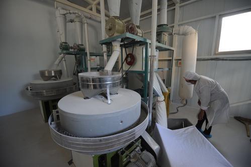 河北冀森農(nóng)業(yè)科技有限公司工人查看電動石磨磨制黑小麥面。近年來,河北為促進農(nóng)業(yè)提質(zhì)增效、農(nóng)民就業(yè)增收,大力發(fā)展農(nóng)產(chǎn)品加工業(yè),扶持農(nóng)產(chǎn)品加工企業(yè)做大做強。河北冀森農(nóng)業(yè)科技有限公司選用黑小麥作為原料,將傳統(tǒng)石磨工藝與現(xiàn)代科技相結(jié)合,生產(chǎn)出石磨面粉。